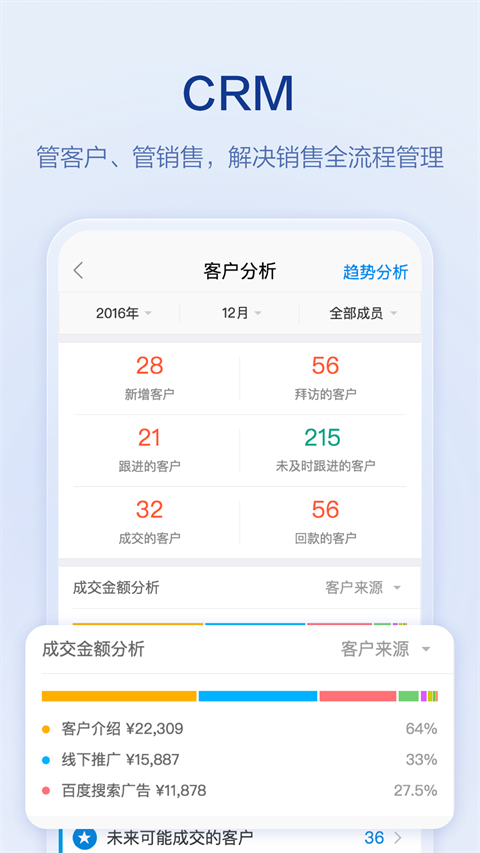 从客户管理到销售全流程监控,再到营销推广和数据分析,它都能完美胜任。小叶发现这个功能特别适合需要精细化运营客户的企业,轻轻松松就能掌握业绩动态。